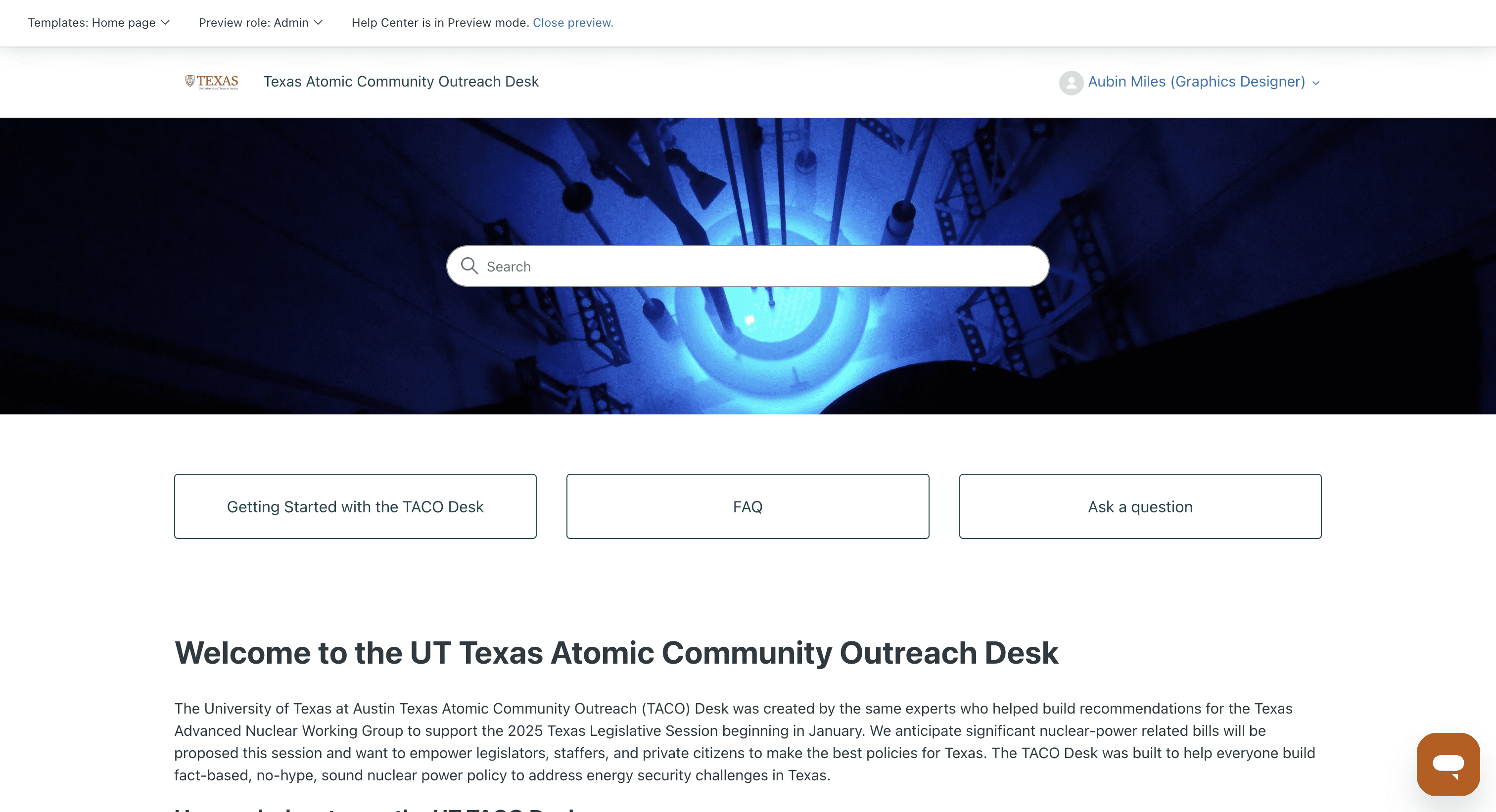 Disjointed branding: The site was a default Zendesk template, making it feel disconnected from a University of Texas entity, TACO’s identity.